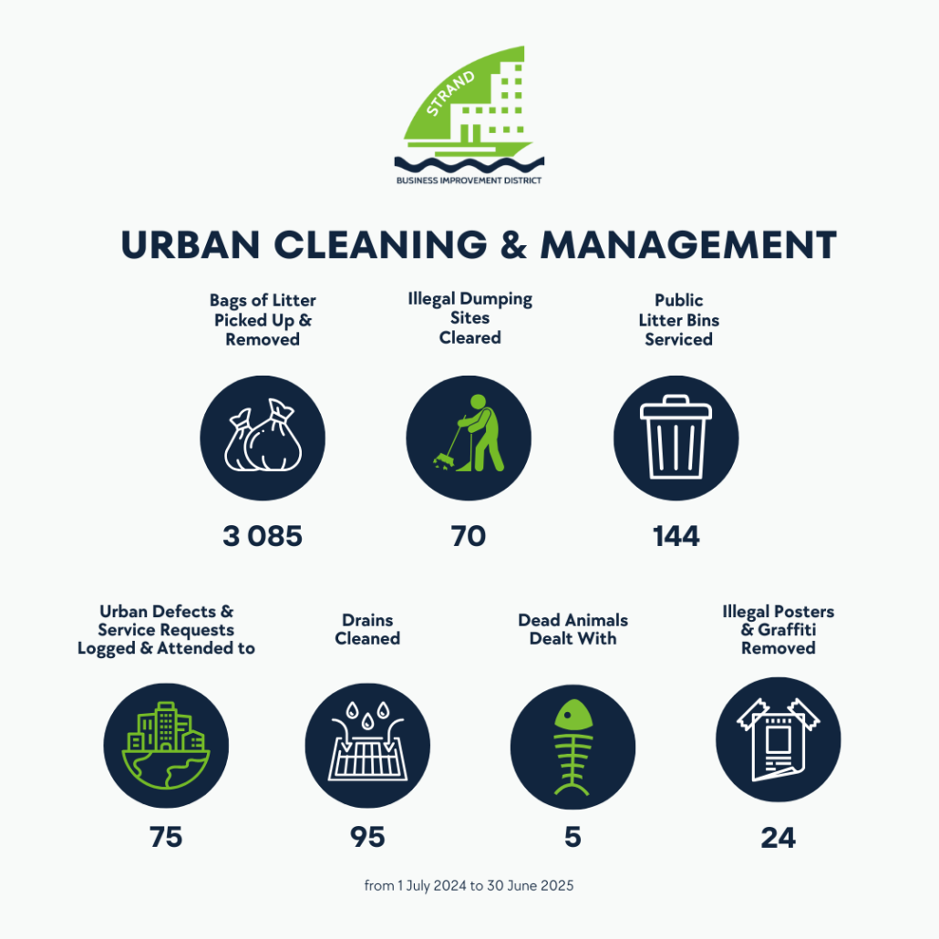 Across Strand, our cleaning and maintenance teams have worked throughout the year to keep streets, verges and public spaces clean and well managed. Activities such as removing litter, clearing illegal dumping, attending to urban defects, servicing public bins and keeping stormwater infrastructure clear have all contributed to creating a more inviting environment for workers, visitors and businesses.